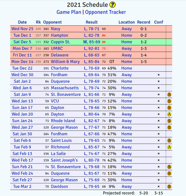 Prior to coming to GW, Coach Christian never won a game against a top-100 KenPom school. He was 0-30 combined at MSM and Siena. Here at GW, he is 2-9, all last year, the two wins being the 4-OT game vs #70 Davidson and a win at #95 Duquesne.